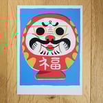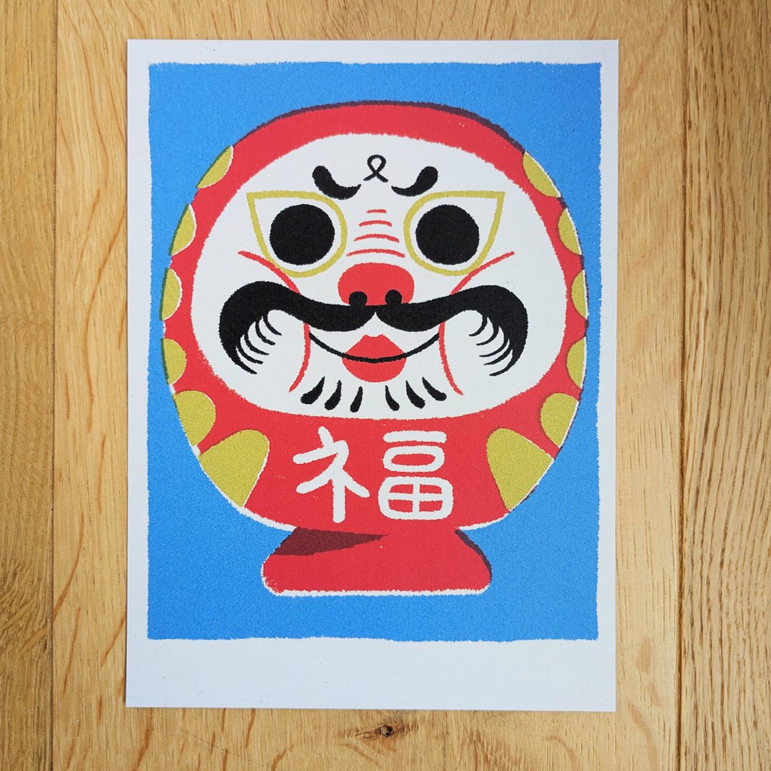 Cette illustration s’inspire des Daruma, une figurine japonaise en papier mâché représentant le moine bouddhiste Bodhidharma, symbole de persévérance, de chance et de prospérité.